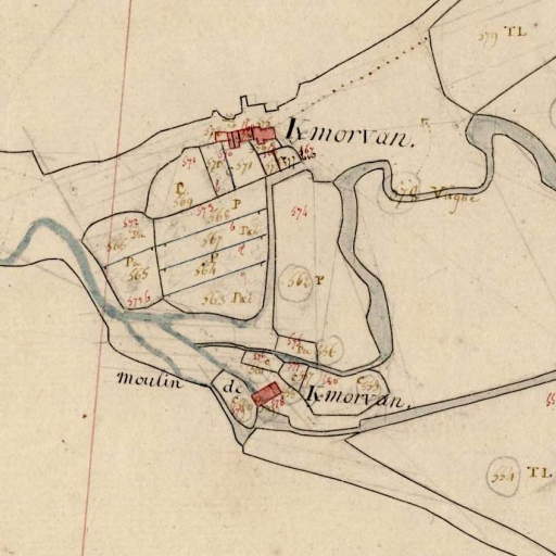 Le moulin de Kermorvan en 1812. Extrait du cadastre, section E 2 (A.D. Finistère, 3 P 19)Immatriculation