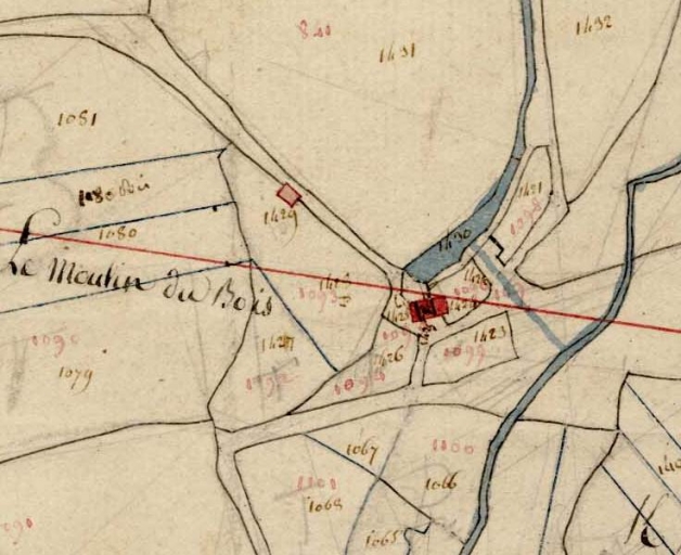 Le moulin du Bois en 1812. Extrait du cadastre, section C 4 (A.D. Finistère, 3 P 19)Immatriculation