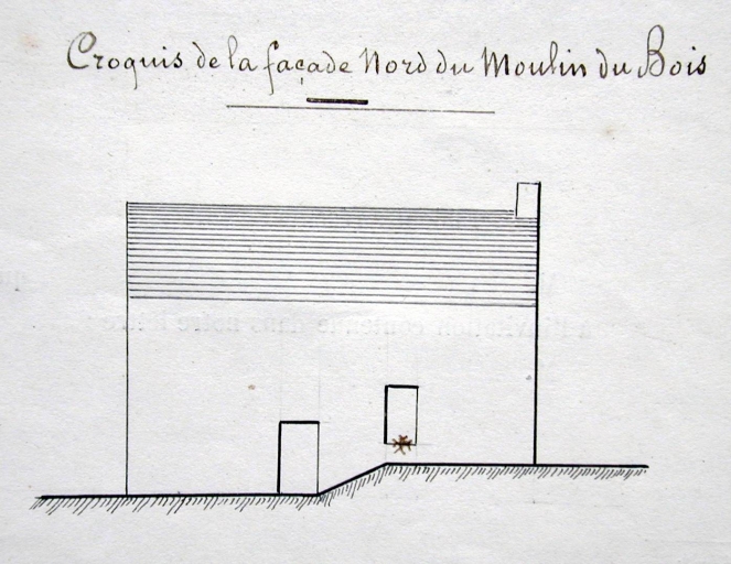 Le moulin du Bois, façade nord. Dessin, 1893 (A.D. Finistère, 7 S 82)Immatriculation