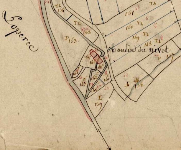 Le moulin du Nivot en 1812. Extrait du cadastre, section H 1 (A.D. Finistère, 3 P 19)Immatriculation