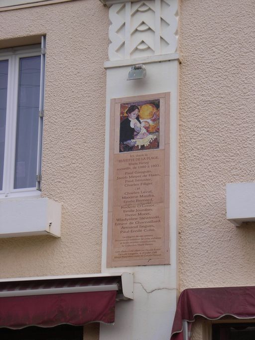 Plaque commémorant l'existence de l'ancienne Buvette de la Plage qui existait à l'emplacement du café de la Plage et où Marie Henry recevait des artistesImmatriculation