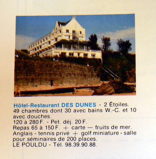 Publicité pour l'ancien Hôtel des Dunes parue dans le bulletin municipal de Clohars-carnoët en 1988Immatriculation