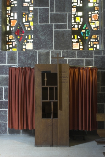 Vue générale d'un confessionnal à loges latérales de tissuImmatriculation