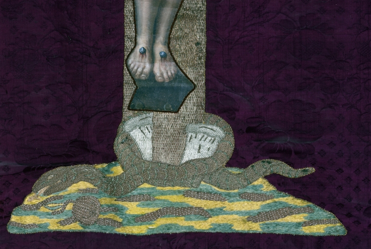 Bannière de procession paroissiale : Saint Martin de Tours, Christ en croix,