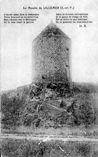 Reproduction d'une carte postale ancienne, fin 19e siècle moulin à vent de LillemerImmatriculation