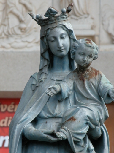 Statue de couronnement de la grotte, Vierge à l'enfant, détailImmatriculation