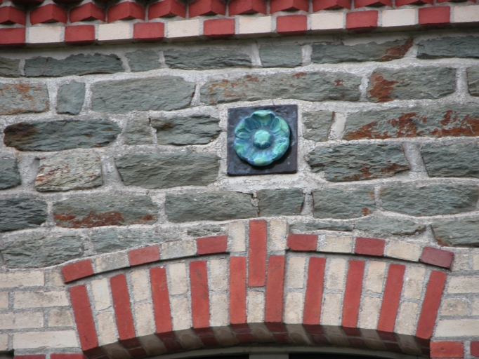 Détail, décor cabochon en grès vernisséImmatriculation