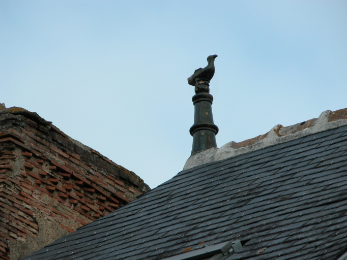 Logis, détail, épi de faîtage en terre cuite vernisséeImmatriculation