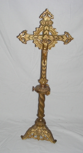 Garniture d'autel 1 : 4 chandeliers et croix d'autel,