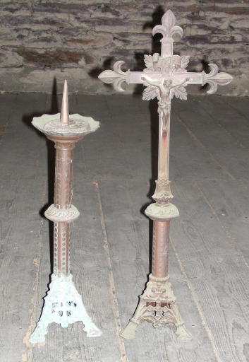 Garniture d'autel 2 : 4 chandeliers et 1croix d'autel,