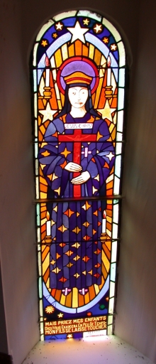 Ensemble de 5 verrières des baies 5, 7, 8, 10 et 00 : Sacré Coeur, Notre-Dame de Pontmain,