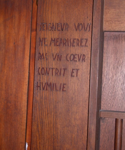 Inscription gravée sur l'un des confessionnauxImmatriculation