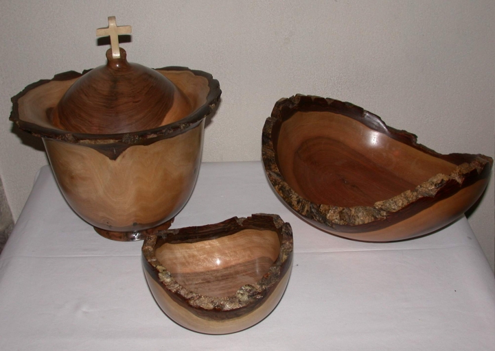 Ensemble de trois vases sacrés en bois de noyerImmatriculation