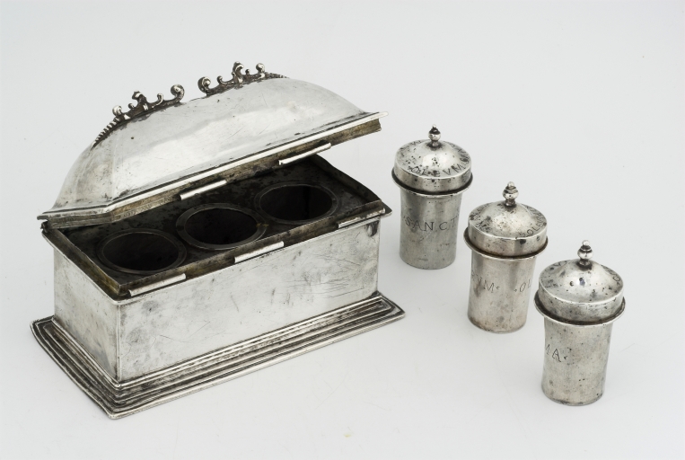 Coffret aux saintes huiles avec trois ampoules aux saintes huiles,