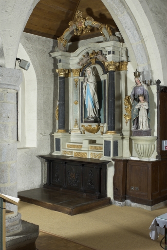 Ensemble de deux autels et deux retables (autels secondaires) : Sacré-Coeur ; Vierge,
