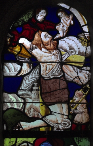 Verrière (maîtresse-vitre) : Le bon larron crucifié,