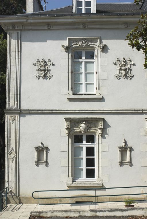 Elévation antérieure, détail de la travée gauche.Immatriculation