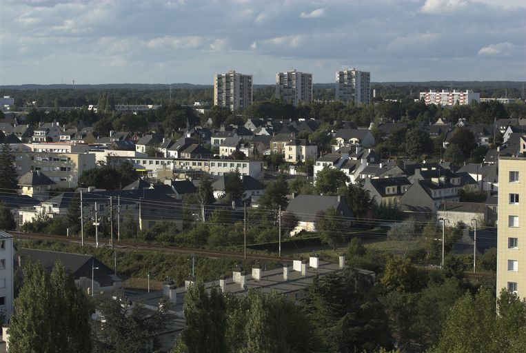 Vue générale : rue de Metz et tours de Kérizac.Immatriculation