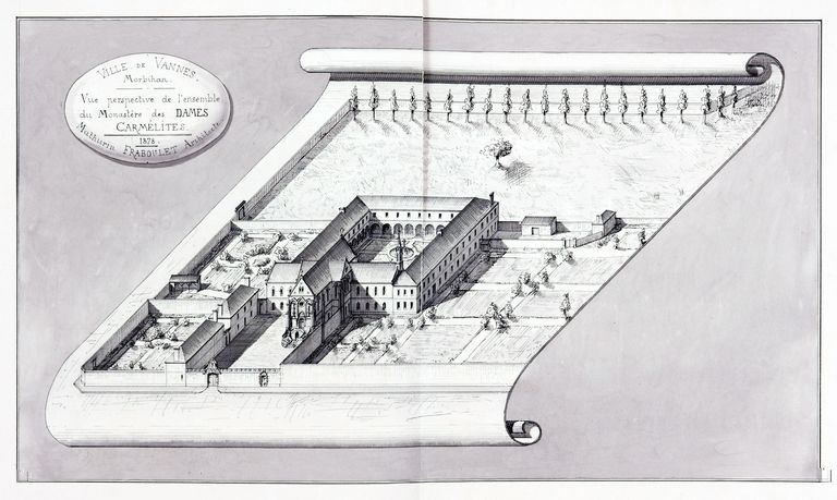Vue perspective de l'ensemble du monastère des Dames carmélites, 1878 par Fraboulet. Fonds privé.Immatriculation
