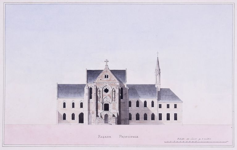 Elévation de la façade principale (nord) du monastère par Fraboulet, 1878. Fonds privé.Immatriculation
