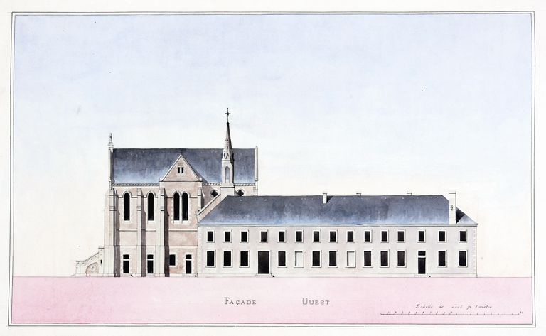 Elévation de la façade ouest du monastère par fraboulet, 1878. Fonds privé.Immatriculation