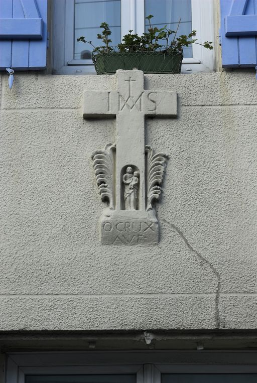 Elévation sud, croix en relief avec niche à saint.Immatriculation