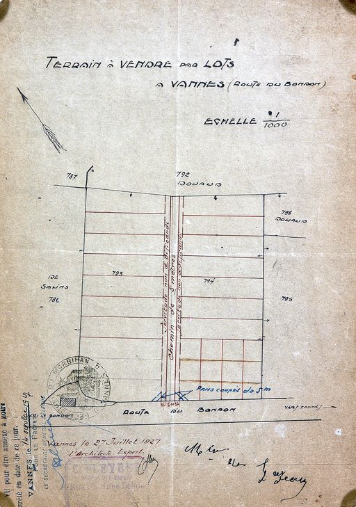 Plan du lotissement Gazeau des Boucheries, 1927. AM Vannes 1O221.Immatriculation