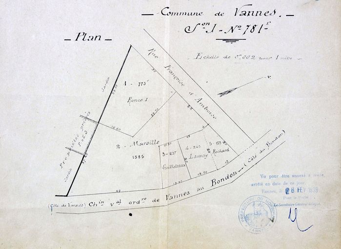 Plan du lotissement, 1939. AM Vannes 1O221.Immatriculation