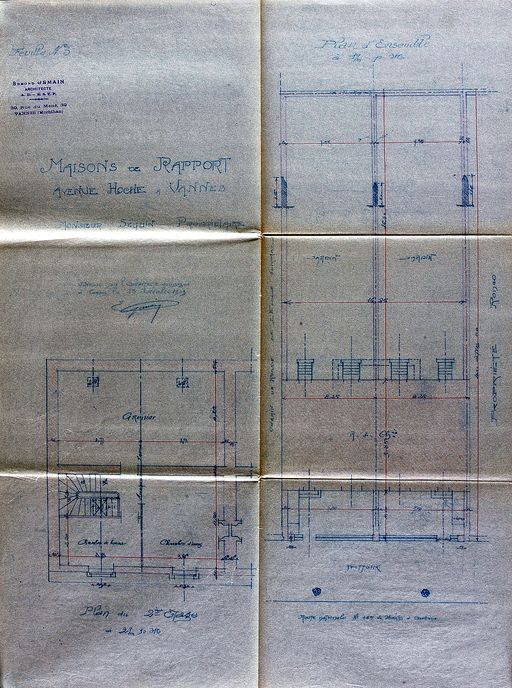 Plans d'ensemble et du 2è étage, par Edmond Gemain, 15 novembre 1909. AM Vannes 5I162.Immatriculation