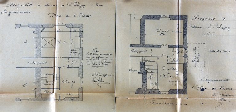 Projet d'agrandissement : plan du 1er étage et des caves par Lefèvre. AM, Vannes 5I162.Immatriculation