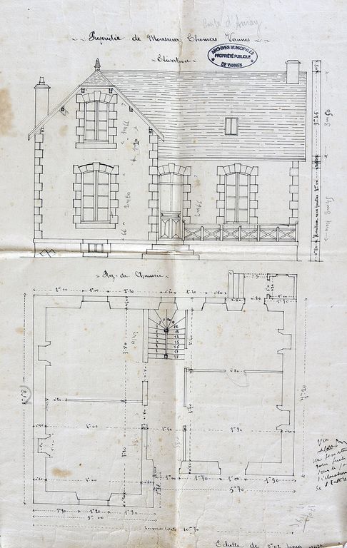 Plan et élévation sud pour Mr Thomas, non signé, ni daté. AM Vannes 5 I162.Immatriculation