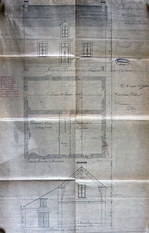 Plan de la maison de monsieur Célibert au Pargo par Lefèvre daté du 8 septembre 1911. AM Vannes 5I162.Immatriculation