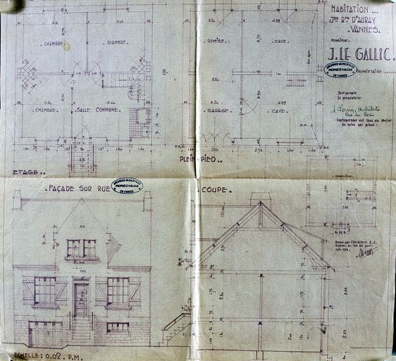 Plan et élévations, par Perrin, architecte, 1938. AM Vannes 5I 162.Immatriculation