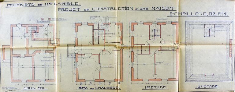 Projet de construction de la maison Daniélo : plans par Guy Caubert de Cléry, 1933. AM Vannes 5 I162.Immatriculation
