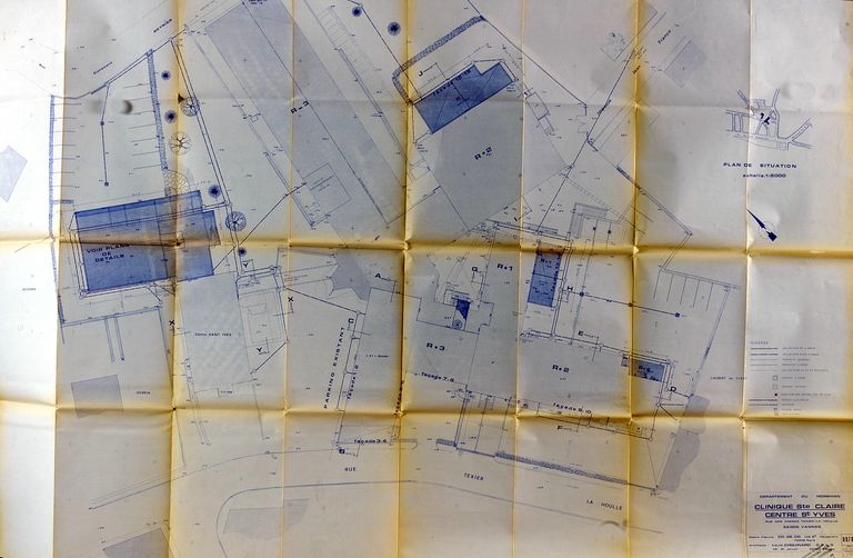 Plan de la clinique Sainte-Claire et du centre Saint-Yves par Louis Chouinard, 1974. AM Vannes 1G59.Immatriculation