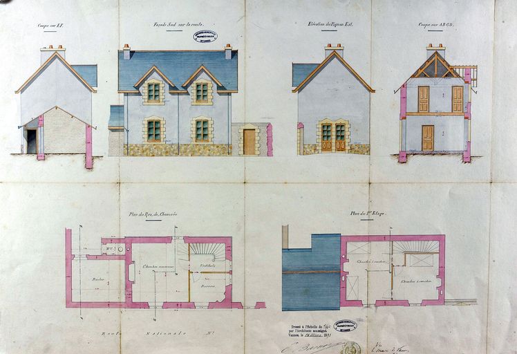 Logement de gardien : plans, élévations, coupe, par Edmond Bassac, 1891. AM Vannes 3N209.Immatriculation