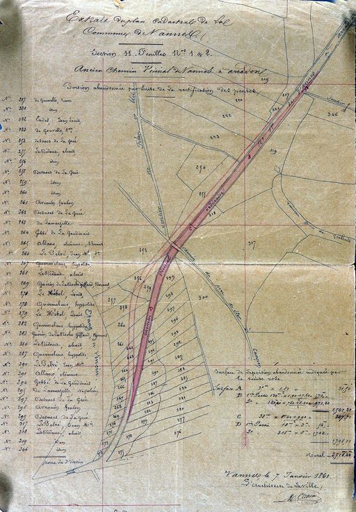 Extrait du plan cadastral section H ancien chemin de Vannes à Arradon : portion abandonnée par suite de la rectification des pentes, 7 janvier 1861. AM Vannes 1 O 218.Immatriculation