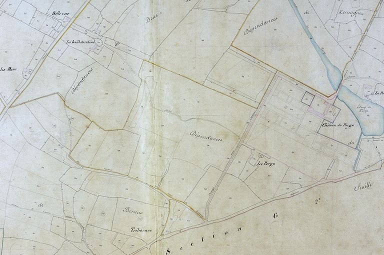 Plan cadastral 1844 : section H Pargo 2e feuille, ferme du Pargo disparue. AM Vannes 21Fi.Immatriculation