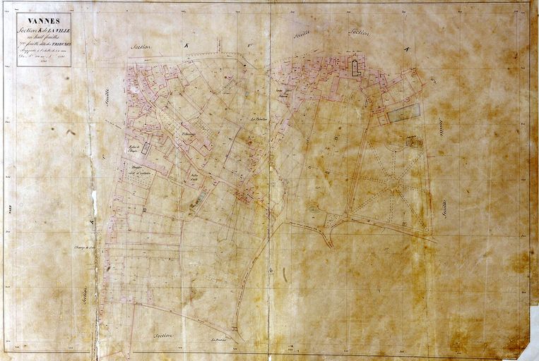 Plan cadastral 1844 : section K7 feuille des Tribunaux. AM Vannes 21Fi.Immatriculation