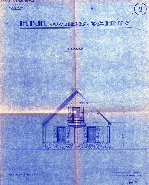 Elévation d'une HBM ouvrière par E. Gemain, 1934. Fonds ODHLM.Immatriculation