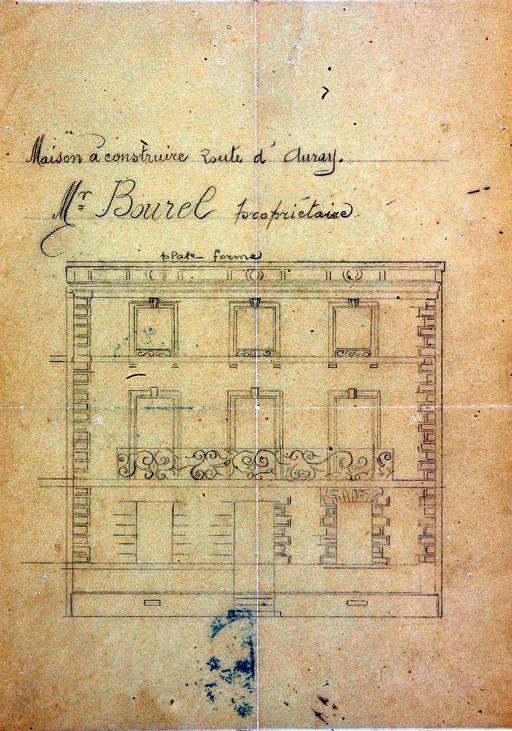 Demande d'alignement pour construire une nouvelle maison par M. Bourel : élévation, 4 janvier 1894. AD Morbihan S 246.Immatriculation