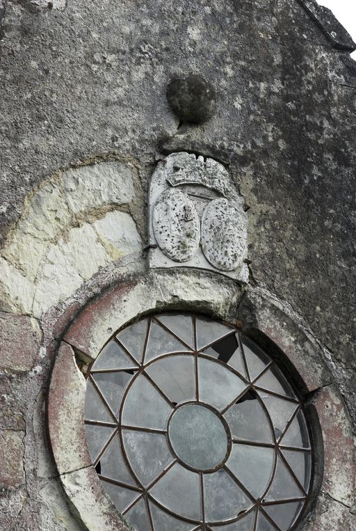 Chapelle, élévation ouest, oculus et armes martelées de la famille Gibon.Immatriculation