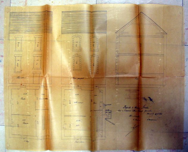 Projet de maison : plan et élévation de la maison Droalen, avril 1913. AM Vannes 5I162.Immatriculation