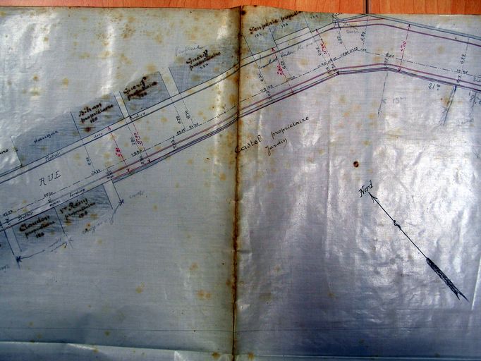 Projet de classement et d'alignement de la rue Saint-Gildas par Rousseau, 30 septembre 1925, partie médiane ouest. AM Vannes 1O216.Immatriculation