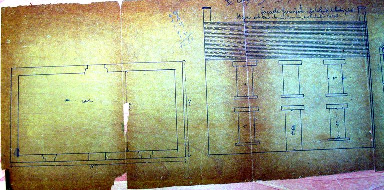 Projet de maison pour Le Quintrec plan au sol et élévation, sans date et sans auteur. AM Vannes 5I162 route de Pontivy.Immatriculation