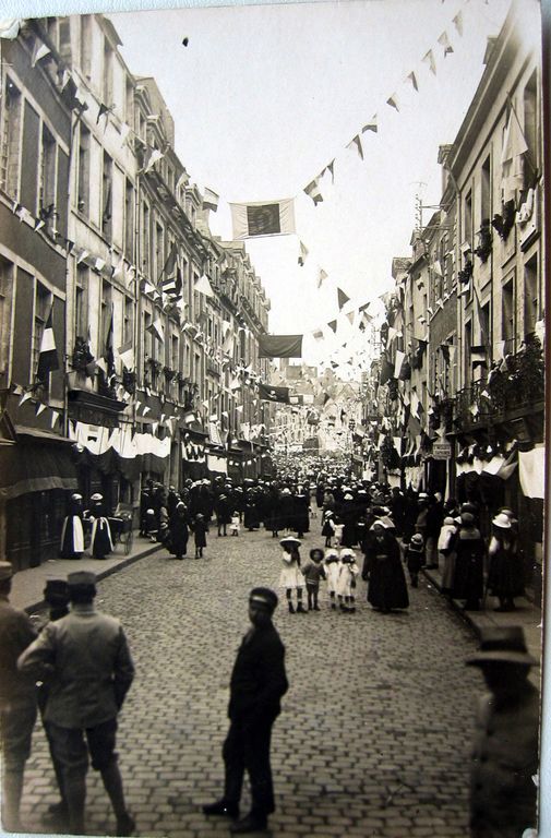 La rue Saint-Vincent, vue prise du sud, vers 1910 ? Photo ancienne. AD Morbihan 9 Fi.Immatriculation