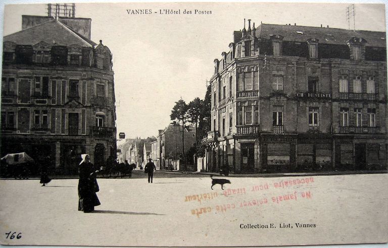 Place de la République, vers 1910-1920. Carte postale ancienne, coll. E. Liot, Vannes. AD Morbihan 9 Fi.Immatriculation