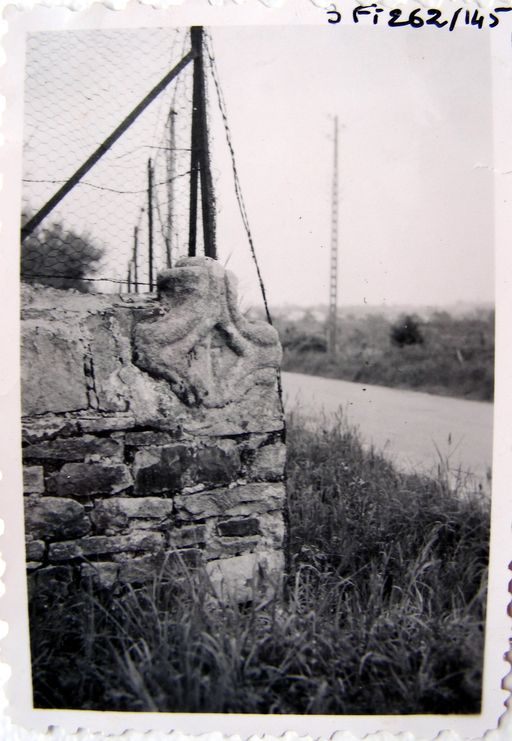 Croix intégrée dans un mur d'enclos route de Conleau. Vue vers 1960 , Cliché Godineau. AD Morbihan 3 Fi 262/145.Immatriculation