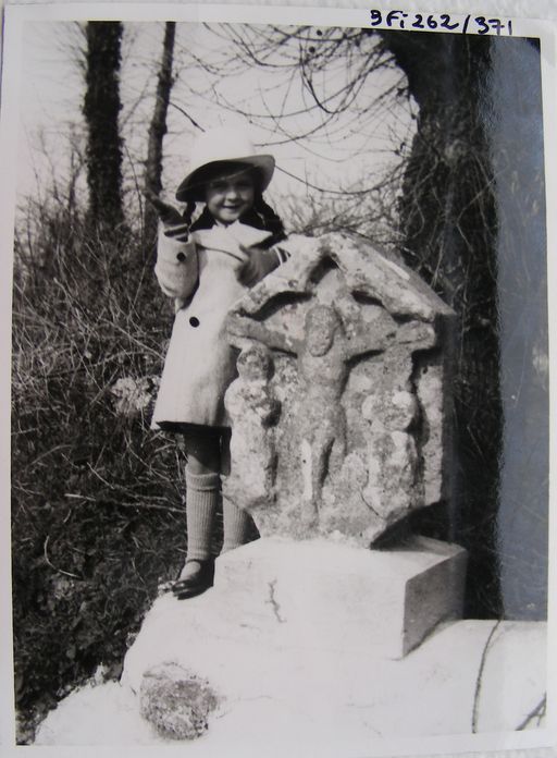 Croix de Poignant, 15e siècle, croisillon remonté sur une base moderne. Photo vers 1950 ? Cliché Thomas-Lacroix. AD Morbihan 3 Fi 262/371.Immatriculation