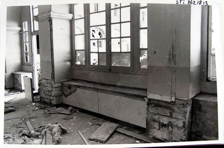 Détail des piles du cloître en cours de destruction. 1968. Cliché Thomas-Lacroix. AD Morbihan 3 Fi 262/813.Immatriculation